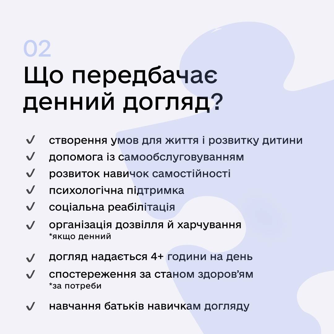 👧 Доглядати дитину з інвалідністю — це щоденна робота, яка потребує сил, знань і простору для відновлення. Іноді сімʼї важко впоратись самотужки — і саме тоді допоміжною може бути послуга денного догляду для дітей з інвалідністю.