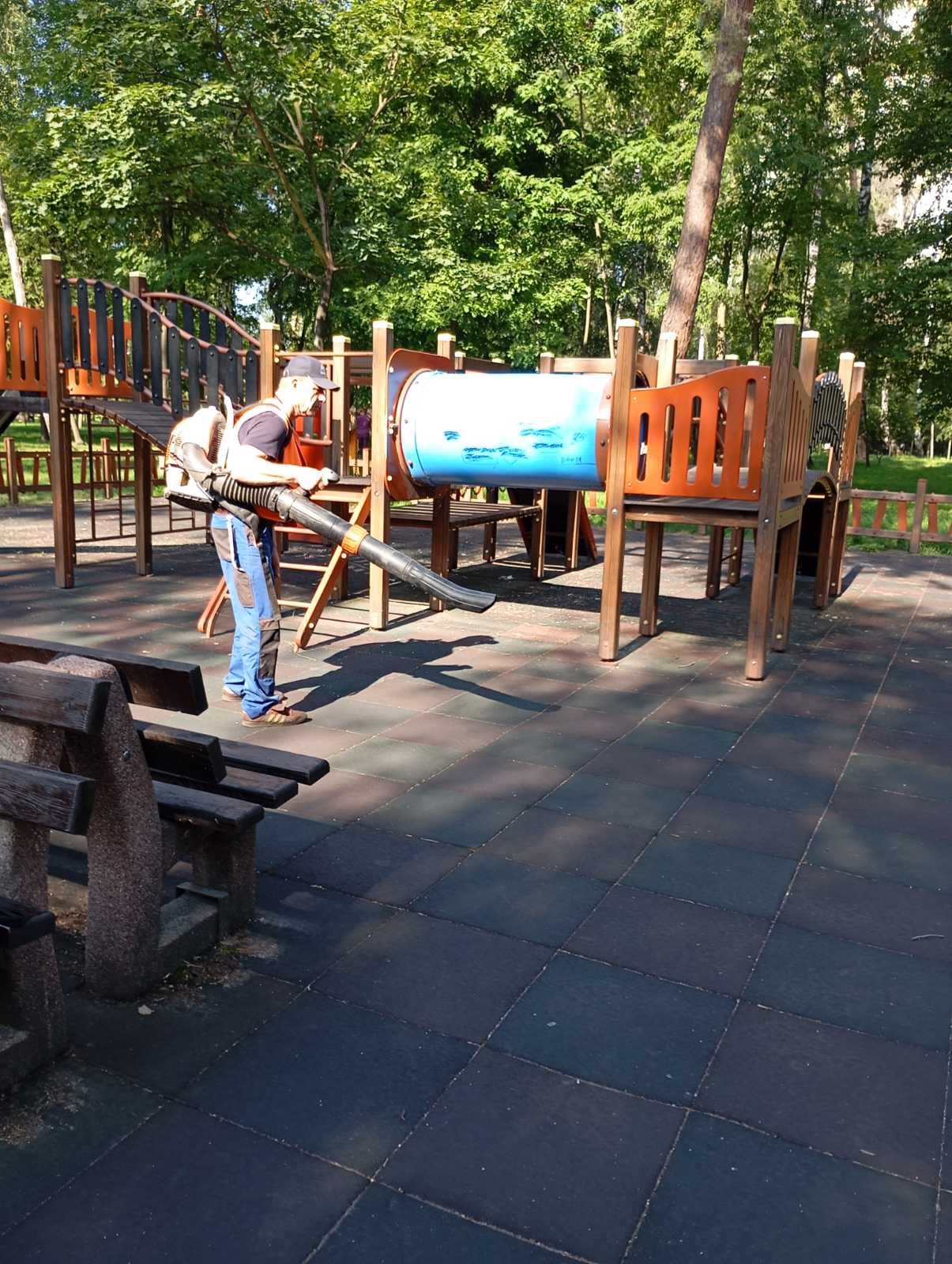 Особлива увага приділяється безпеці та чистоті дитячих майданчиків, адже саме вони є місцем щоденного відпочинку та розваг для найменших мешканців району. Працівники КП по УЗН ретельно прибирають території майданчиків від сміття, піску та пилу, перевіряють цілісність конструкцій, безпечність гойдалок, гірок та інших ігрових елементів. Це гарантує, що діти можуть гратися в безпечному та чистому середовищі.