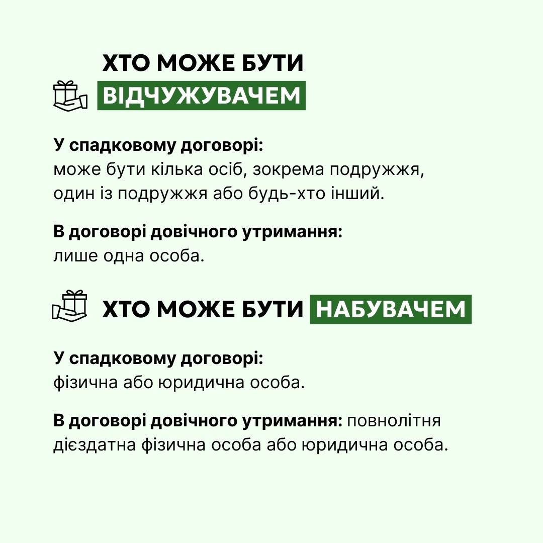 Договір довічного утримання (догляду) та спадковий договір – два способи передачі майна, які мають спільну мету: передати майно від відчужувача до набувача. Проте, важливо розуміти, що вони суттєво відрізняються умовами та правовими наслідками. Який же договір краще укласти у вашому випадку?