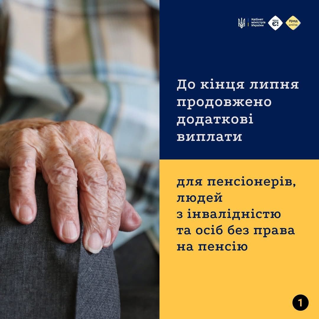 📌Продовжено виплати пенсіонерам, особам без права на пенсію та людям з інвалідністю до кінця липня.