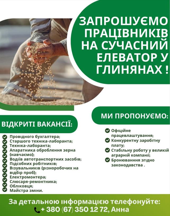 Наразі ми маємо понад 10 відкритих вакансій, що охоплюють різноманітні сфери: від бухгалтерського обліку та лабораторних досліджень до роботи електромонтера та водія. Кожна вакансія передбачає офіційне працевлаштування, пропонує конкурентоспроможну заробітну плату та чудові перспективи для професійного зростання всередині нашої стабільної аграрної компанії. Ми цінуємо внесок кожного співробітника і створюємо умови для розвитку.