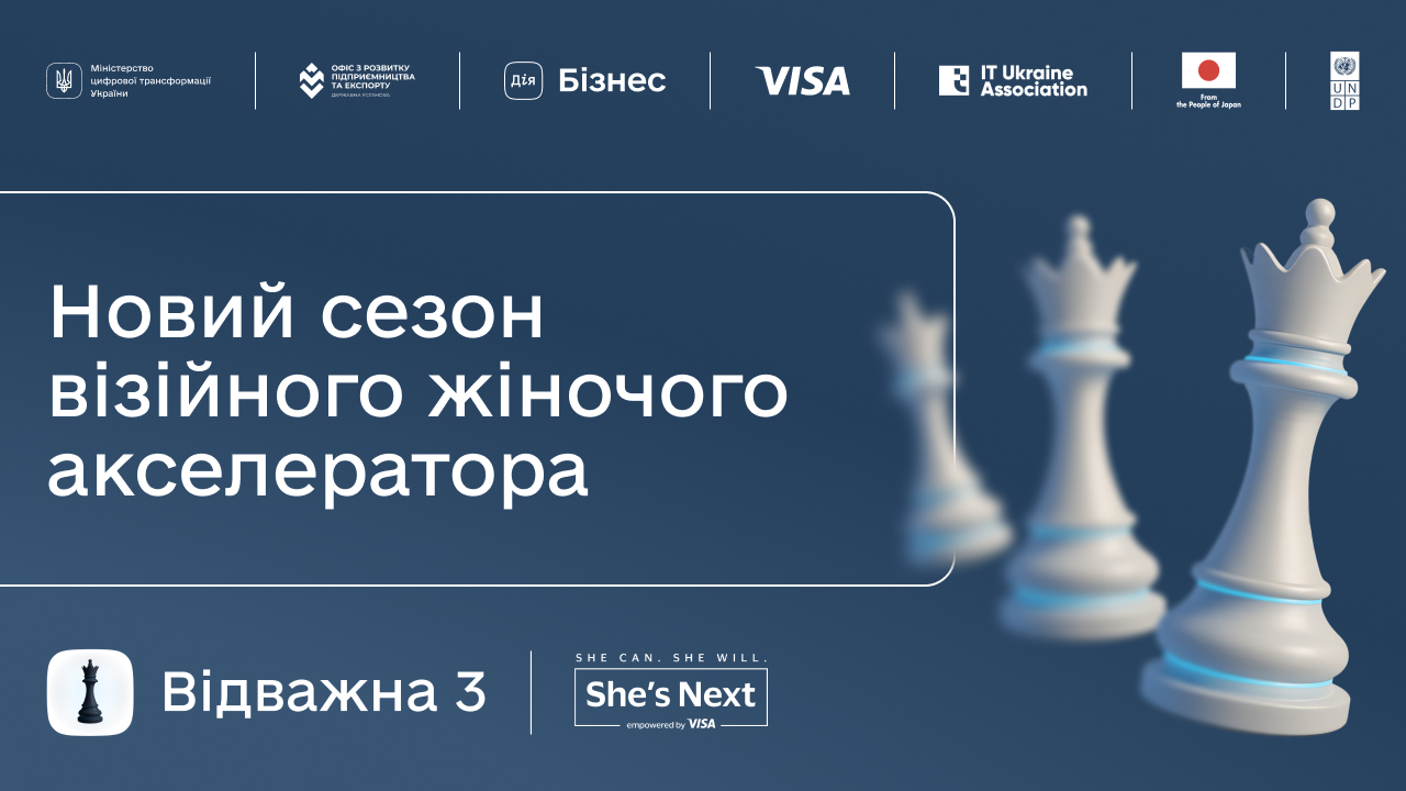 Відкривається набір учасниць на третій сезон національного візійного жіночого акселератора «Відважна 3. Цифрова еволюція бізнесу». Ця унікальна програма створена спеціально для діючих підприємиць, які прагнуть здійснити глибоку трансформацію свого бізнесу. Мета акселератора – допомогти жінкам-підприємцям впровадити цифрові рішення, оптимізувати бізнес-процеси, автоматизувати операційну діяльність та успішно вийти на нові ринки.