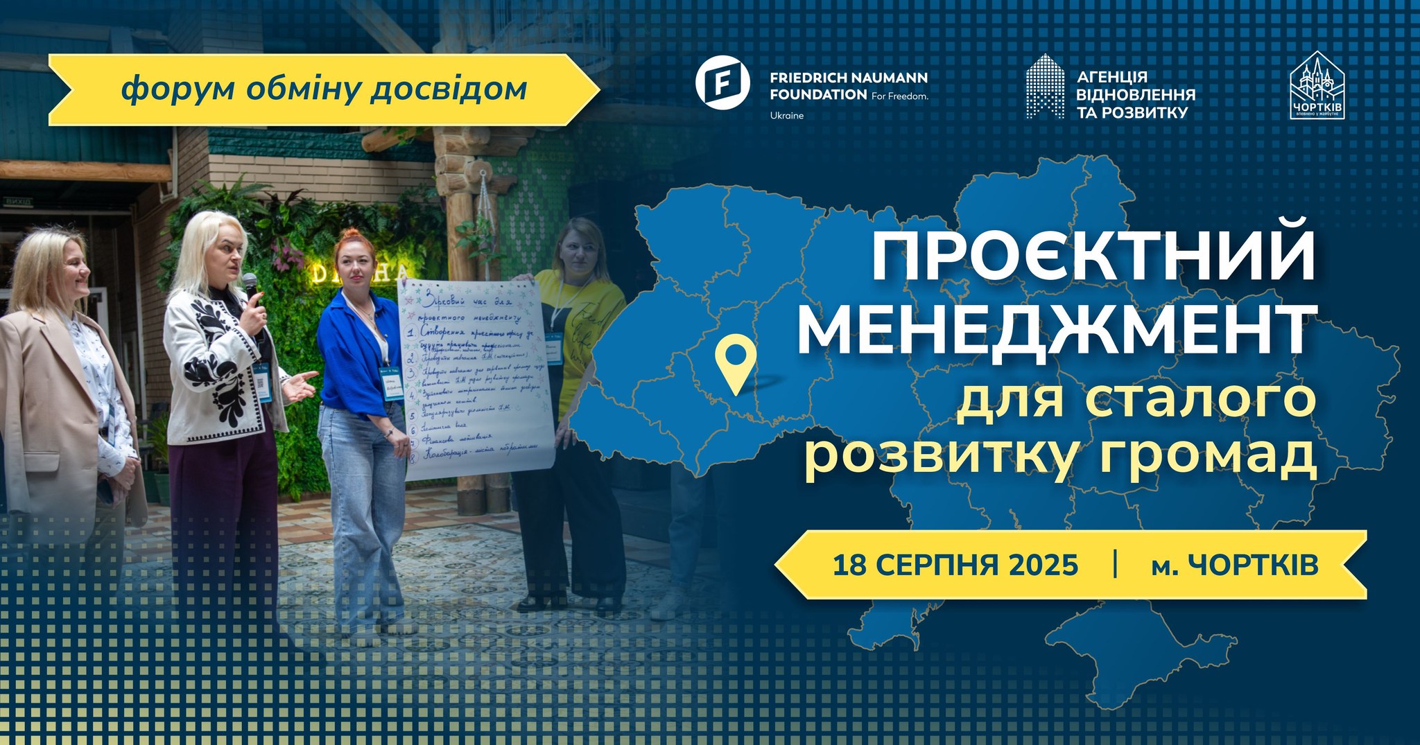 Форум є невід’ємною частиною масштабного проєкту «Відновлення разом: Спільнота проєктних менеджерів для відновлення та розвитку громад», який втілюється ГО «Агенція відновлення та розвитку» за безцінної підтримки Представництва «Фонду Фрідріха Науманна за Свободу».