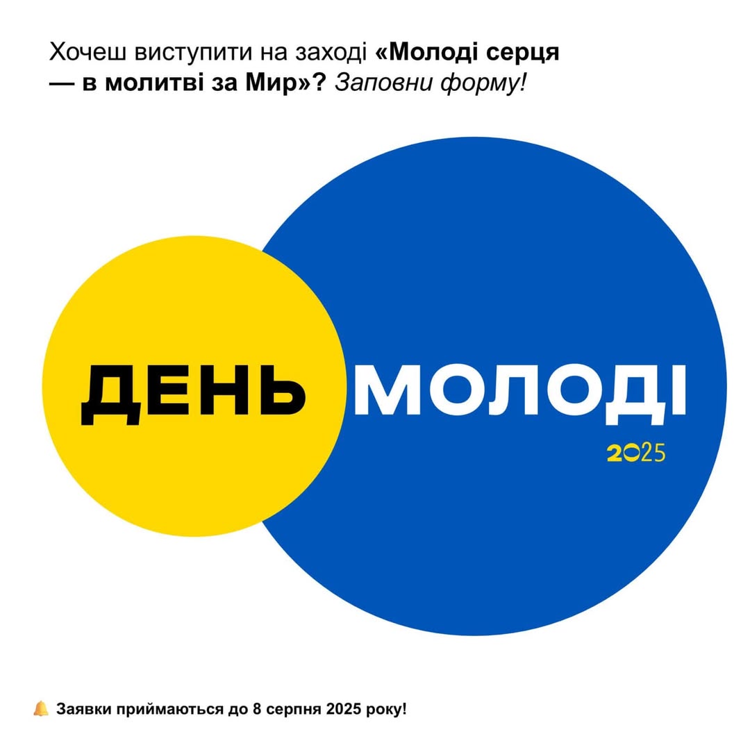 Запрошуємо вас взяти участь у важливій події — загальнотериторіальному заході “Молоді серця- в молитві за Мир”, який відбудеться 12 серпня з нагоди Міжнародного дня Молоді!