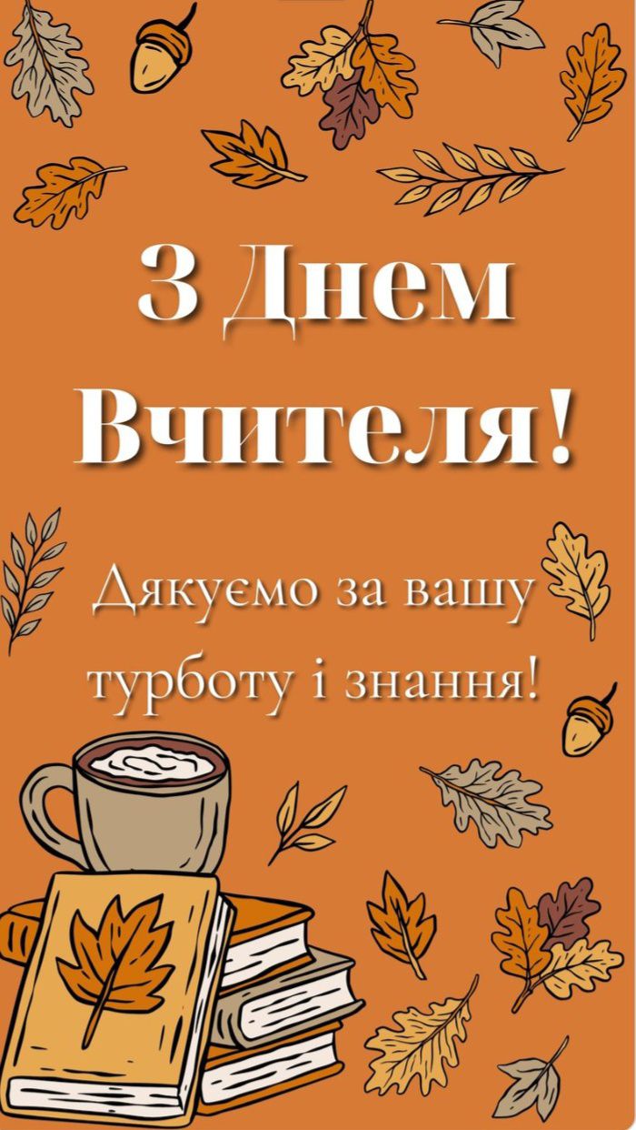 👩🏫👨🏫 Сердечно вітаю вас із прийдешнім професійним святом – Днем вчителя! У цей надзвичайно складний для нашої держави час, коли Україна бореться за своє майбутнє, ви продовжуєте залишатися справжніми Героями освітнього фронту. Ваша відданість справі, самовідданість та надзвичайна стійкість заслуговують на найглибшу повагу.