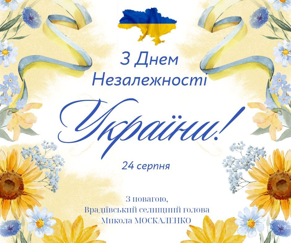 Сердечно вітаю вас із найважливішим державним святом – Днем Незалежності України! Цей день є символом нашої незламної волі, прагнення до свободи та самостійного майбутнього.