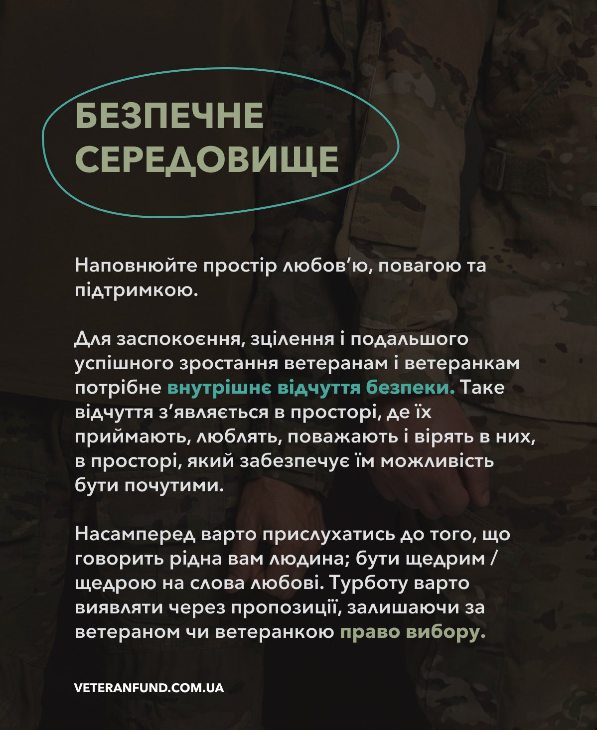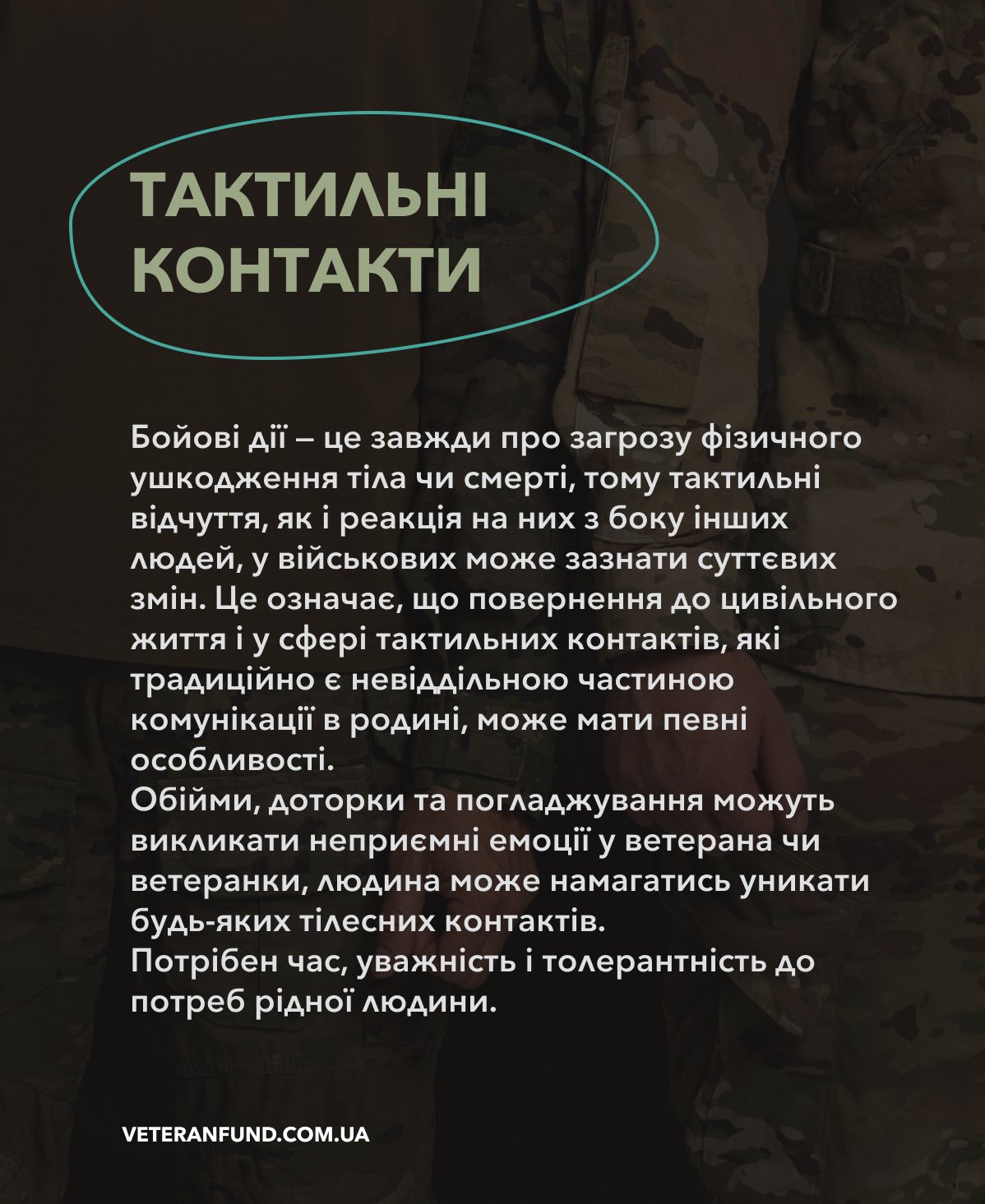 Важливо пам’ятати, що ветерани можуть переживати посттравматичний стресовий розлад (ПТСР), що може проявлятися у змінах настрою, тривожності, порушеннях сну або уникненні певних ситуацій. Ваша підтримка та розуміння допоможуть їм легше пройти через ці труднощі. Не соромтеся звертатися за професійною допомогою, якщо відчуваєте, що це необхідно.