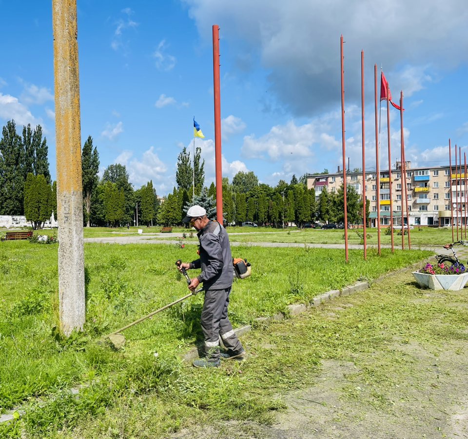 👉Наразі роботи з покосу проводяться на площі Миру та вулиці Європейській.