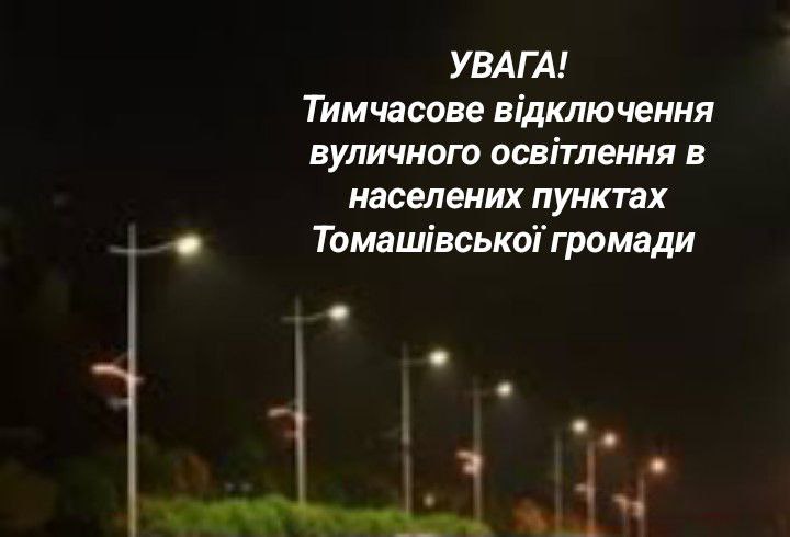 Шановні мешканці Томашівської громади! Доводимо до вашого відома важливу інформацію щодо режиму роботи вуличного освітлення.