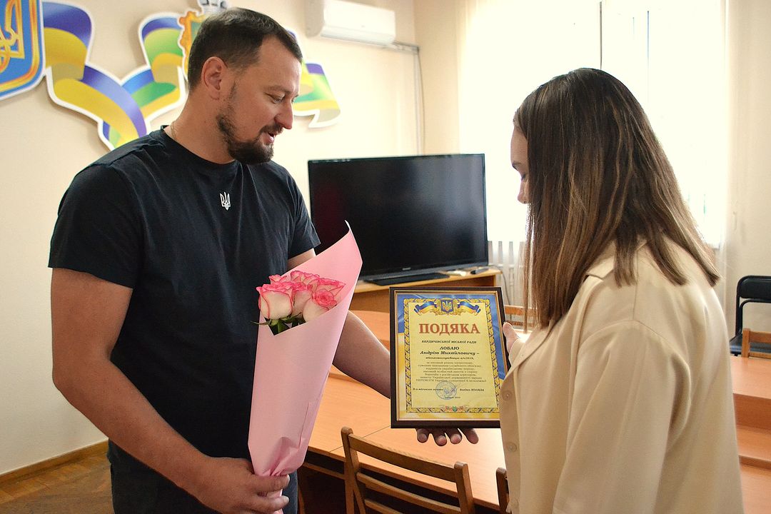 Виконувач обов’язків міського голови Богдан Коляда зустрівся з дружиною Андрія — пані Лілією. Вручив їй та синові Михайлу Подяку Бердичівська міська рада. Подякував за чоловіка, який стоїть за всіх українців.