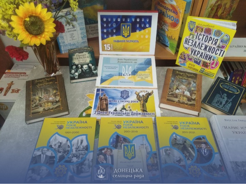🇺🇦До Дня Державності України в Комунальному Закладі Публічна бібліотека Донецької селищної ради Ізюмського району Харківської області проходять книжково-інформаційні виставки, присвячені історії української державності, національним символам та видатним постатям, які відіграли важливу роль у становленні незалежної України.