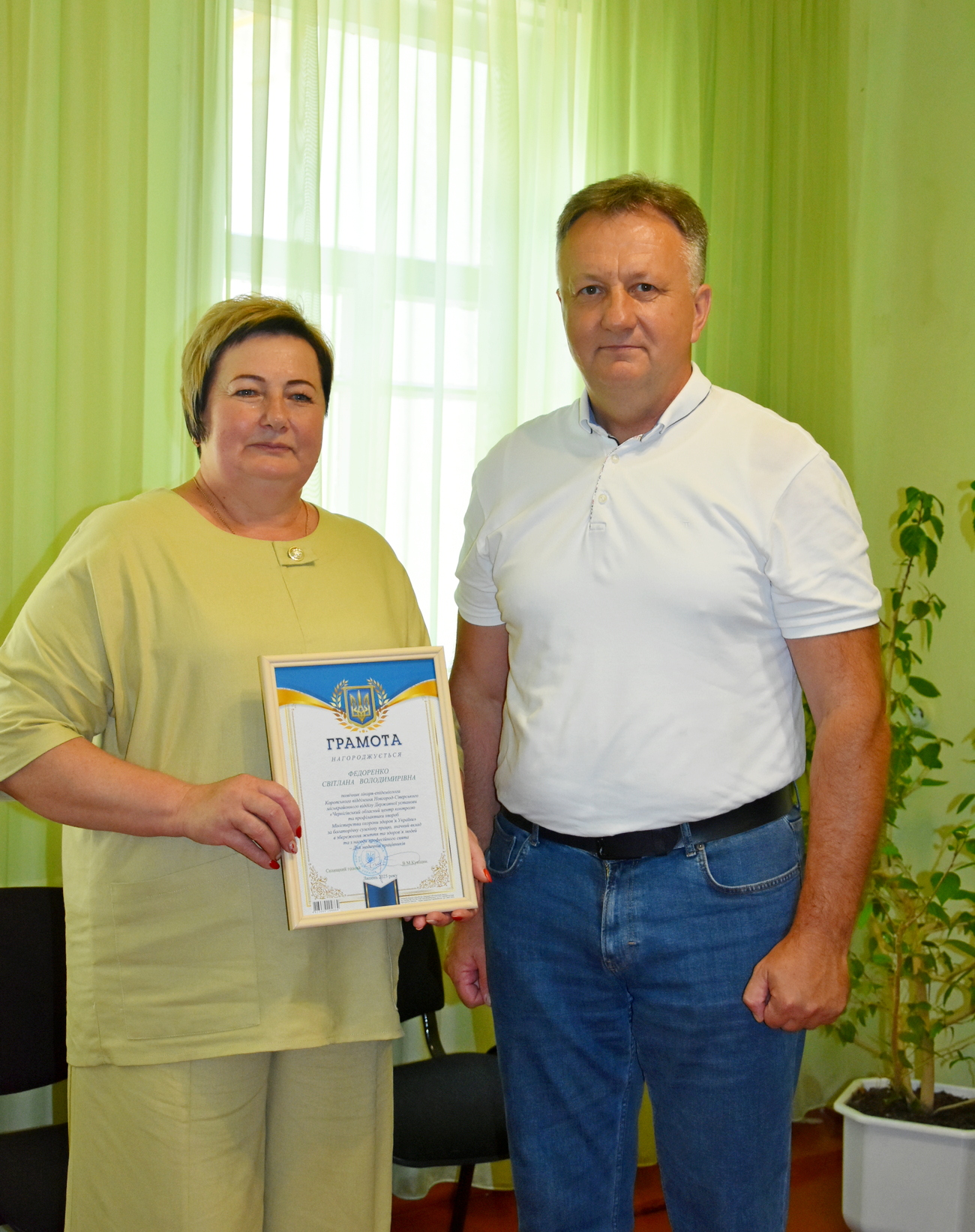 З нагоди професійного свята та за багаторічну сумлінну працю, високий професіоналізм, голова громади відзначив Почесною грамотою Світлану ФЕДОРЕНКО, яка наразі виконує обов’язки завідувача Коропським відділенням. Це визнання її значного внеску у сферу охорони здоров’я.