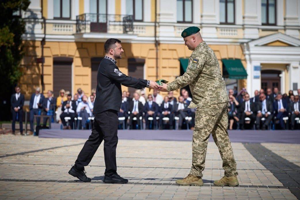 ***Начальник загону, полковник Олександр Карпець, з гордістю прийняв відзнаку з рук Глави держави під час урочистої церемонії, присвяченої Дню Незалежності України.***