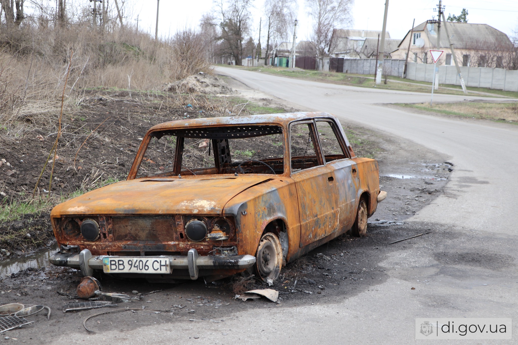 📷 На першому фото – Дмитро Діброва на уроці інформатики у Слатинському ліцеї незадовго до повномасштабного вторгнення рф. На другому фото, зробленому 3 квітня 2022 року, – згорілий автомобіль учителя на місці події.