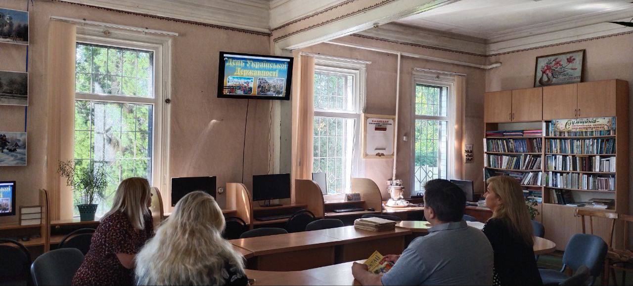 До Дня Української Державності Публічна бібліотека Кролевецької міської ради спільно з працівниками Конотопського районного сектору #2 філії Державної Установи “Центр пробації” провела для клієнтів центру історико-патріотичну годину «Державність – у серці кожного з нас».