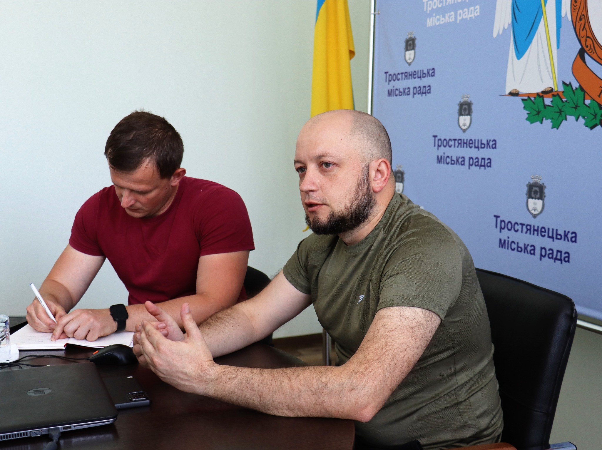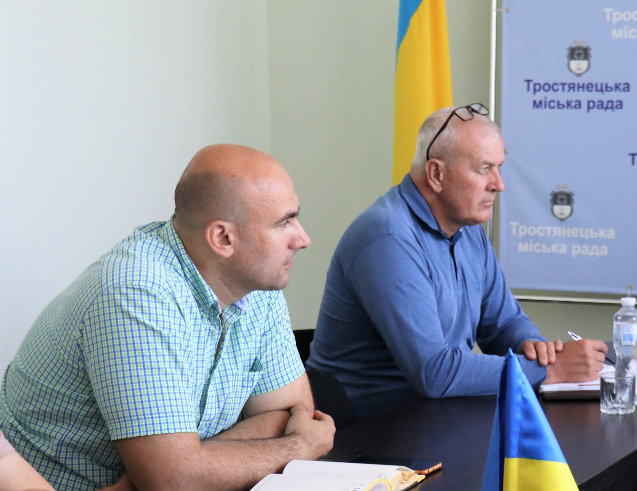 🔰На зустрічі були присутні заступники Тростянецького міського голови Юрій Заяц і Максим Синявін, керівництво відділів міської ради, фахівці комунального підприємства «Тростянецькомунсервіс», а також представник підрядної організації, що виграла тендер на реалізацію проєкту – керівник компанії «Енергозберігаючі технології» Андрій Торубара.