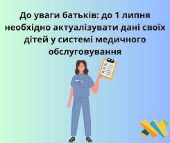 Шановні батьки та опікуни! Звертаємо вашу увагу на надзвичайно важливу інформацію щодо забезпечення безперебійного доступу ваших дітей до медичних послуг в Україні. До 1 липня 2025 року кожен опікун або батько має обов’язково оновити дані дітей у системі медичного обслуговування. Ця процедура, відома як верифікація декларацій, є ключовою для підтвердження особи дитини та її права на отримання кваліфікованої медичної допомоги.Без своєчасної верифікації декларація вашої дитини буде деактивована, що призведе до значних труднощів та, можливо, до повної відмови в наданні медичних послуг у майбутньому. Це може стосуватися як планових оглядів, так і невідкладної допомоги. Отже, забезпечення актуальності даних є пріоритетом для здоров’я та благополуччя вашої дитини.Під час процесу верифікації медичних даних вашої дитини будуть ретельно перевірятися такі документи та інформація:• Особисті документи дитини: свідоцтво про народження, паспорт громадянина України або ID-картка (залежно від віку).• Інформація, що міститься в медичних та державних реєстрах, для підтвердження ідентичності та статусу.• Документи, що підтверджують ваші батьківські права або опіку над дитиною.Важливо зазначити особливості для різних вікових груп:• Для дітей віком до 14 років: достатньо пред’явити лише свідоцтво про народження. Це дозволить підтвердити особу дитини та прив’язку до її медичної декларації.• Для дітей віком від 14 до 18 років: настійно рекомендується мати реєстраційний номер облікової картки платника податків (РНОКПП), відомий як ідентифікаційний код. Його наявність значно спростить процес оновлення даних у декларації та взаємодії з медичними установами.Нагадуємо, що з 1 липня 2025 року всі декларації, які не пройшли процес верифікації, будуть автоматично деактивовані. Це означає, що доступ до медичних послуг за ними буде призупинено. Щоб уникнути подібних незручностей та забезпечити безперервний медичний супровід для вашої дитини, необхідно діяти вже зараз.Які кроки потрібно зробити, щоб оновити дані дітей?1. Негайно зверніться до сімейного лікаря, з яким укладена декларація на вашу дитину. Лікар або його медична сестра нададуть вам необхідні консультації та допоможуть з процесом.2. Ретельно перевірте актуальність усіх даних, зазначених у декларації вашої дитини. Це включає перевірку серії та номеру паспорта, у разі зміни прізвища (наприклад, після одруження батьків), або інших важливих ідентифікаційних даних, таких як РНОКПП.3. У разі відсутності РНОКПП у дитини віком 14-18 років, необхідно звернутися до місцевої податкової інспекції для його отримання. Цей документ є важливим для подальшої ідентифікації у державних реєстрах.Своєчасне оновлення даних — це не просто бюрократична процедура, а життєво важлива запорука безперебійного та повноцінного доступу до всіх необхідних медичних послуг для Вашої дитини. Подбайте про здоров’я та майбутнє своїх дітей, виконавши ці прості, але вкрай важливі кроки. Забезпечення актуальності медичних даних дітей – це ваша відповідальність і турбота про їхнє благополуччя. Не відкладайте процес оновлення даних дітей на останній момент, адже це може вплинути на якість та доступність медичної допомоги.
