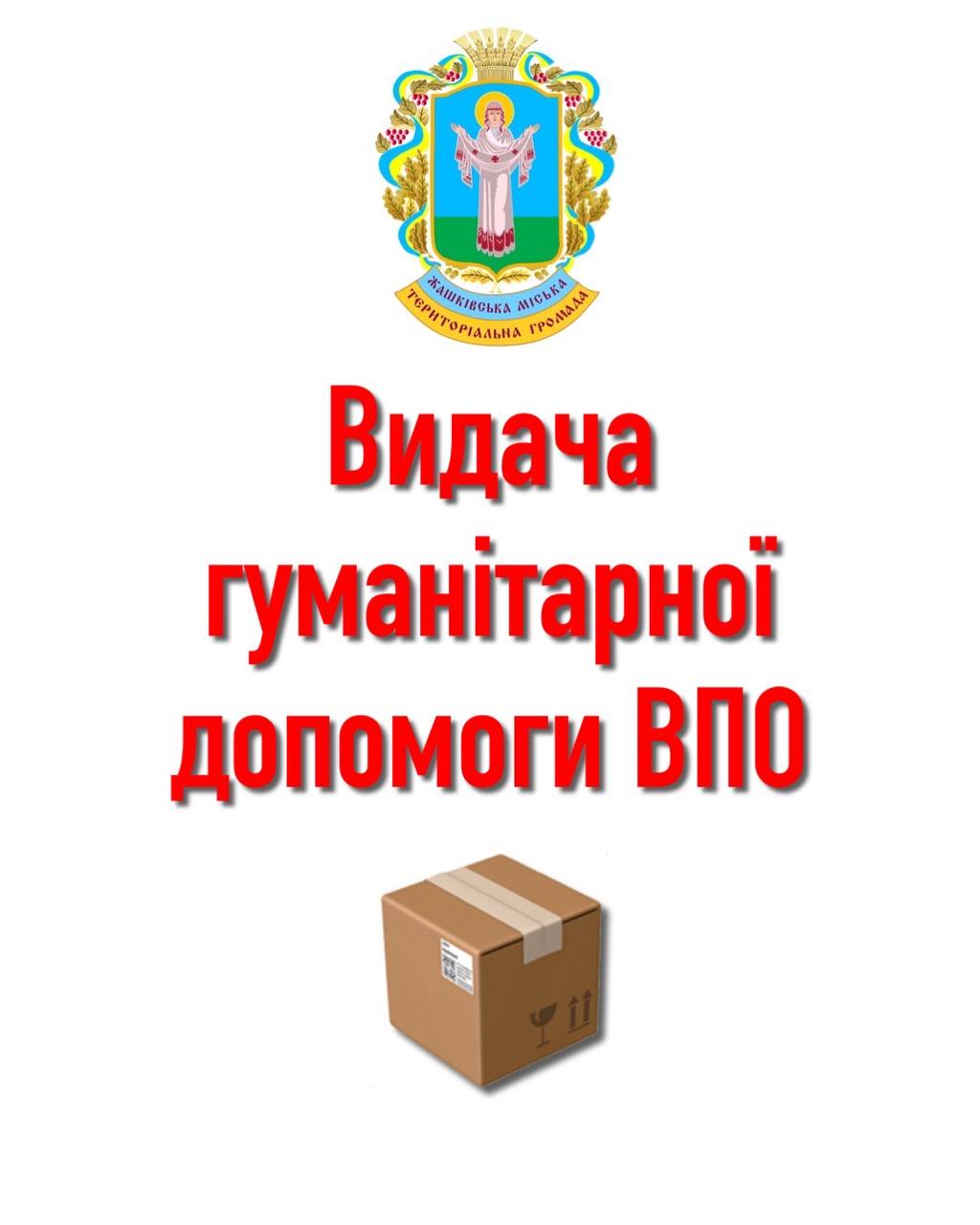 🗓14.08.2025 року о 🕛11:00 на території Жашківської міської ради 📍(м. Жашків вул. Захисників України, 19) буде проводитися видача 📦гуманітарної допомоги у вигляді продуктових наборів та наборів побутової хімії для ВПО – у порядку живої черги.