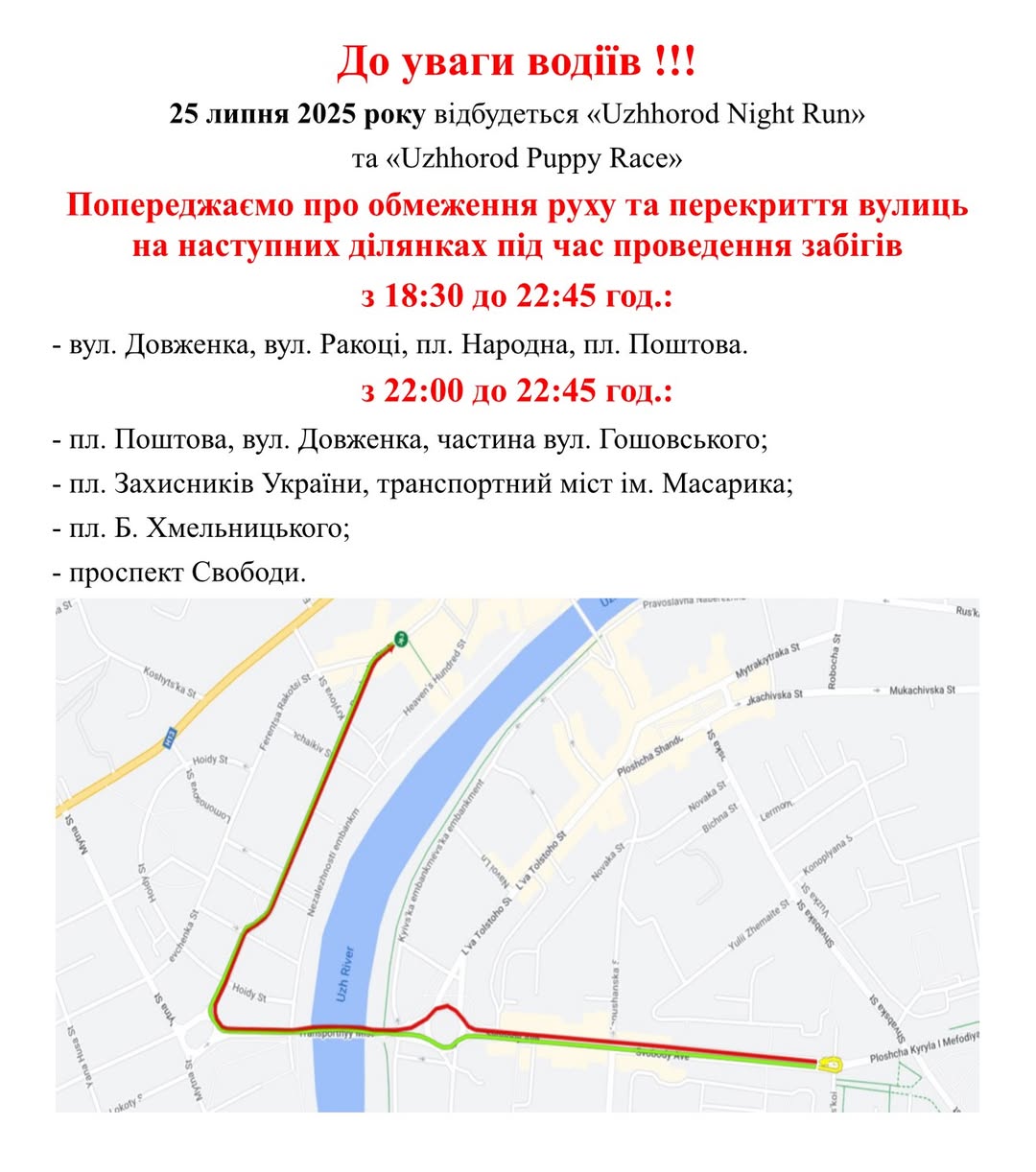 Ужгород: обмеження руху 25 липня для водіїв