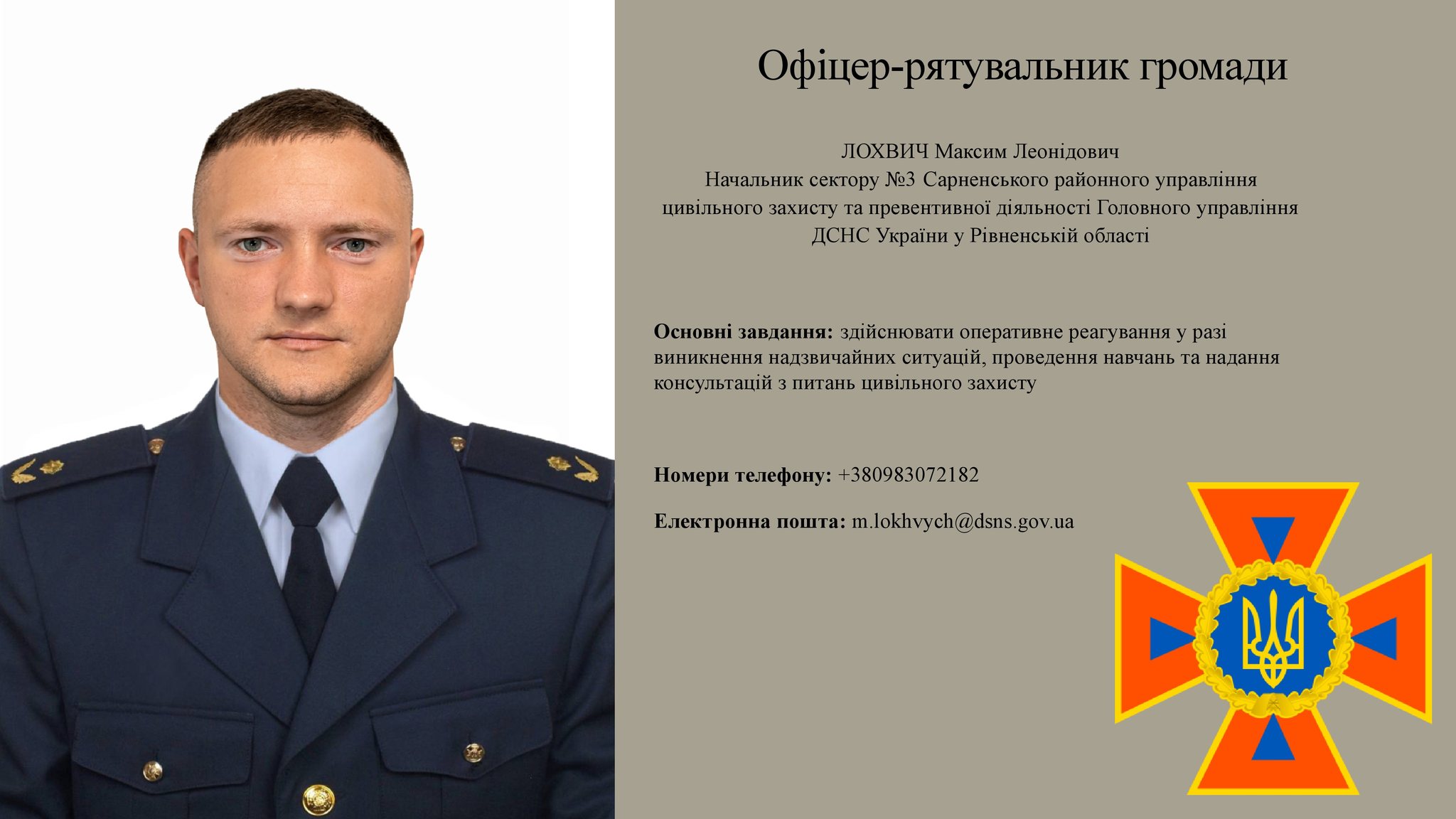 Мешканці Висоцької територіальної громади отримали важливе посилення у сфері безпеки. Відтепер офіційно розпочав свою роботу офіцер-рятувальник, представник Державної служби України з надзвичайних ситуацій (ДСНС) – ЛОХВИЧ Максим Леонідович. Він обіймає посаду начальника сектору №3 Сарненського районного управління цивільного захисту та превентивної діяльності Головного управління ДСНС України у Рівненській області.