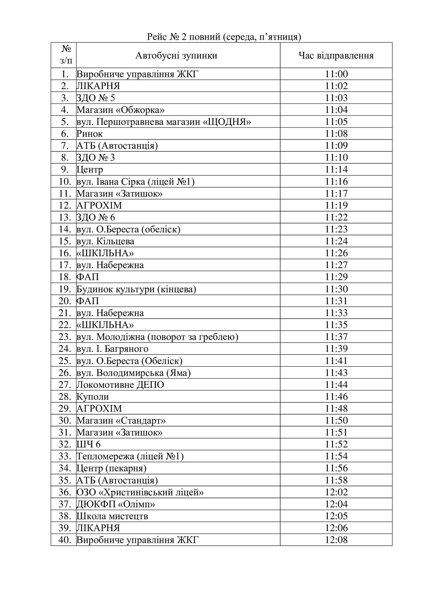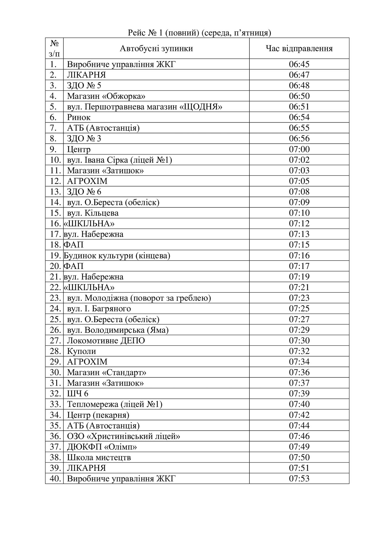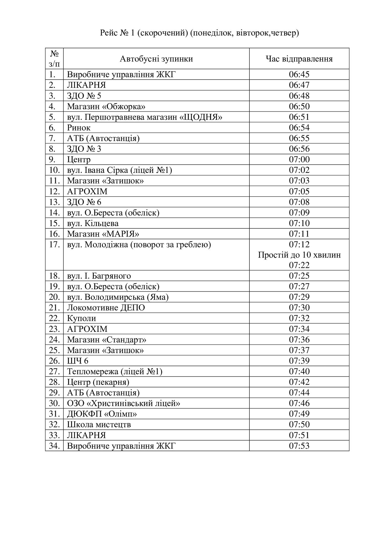 Розклад автобуса №1 Христинівка: графік руху з 1 вересня