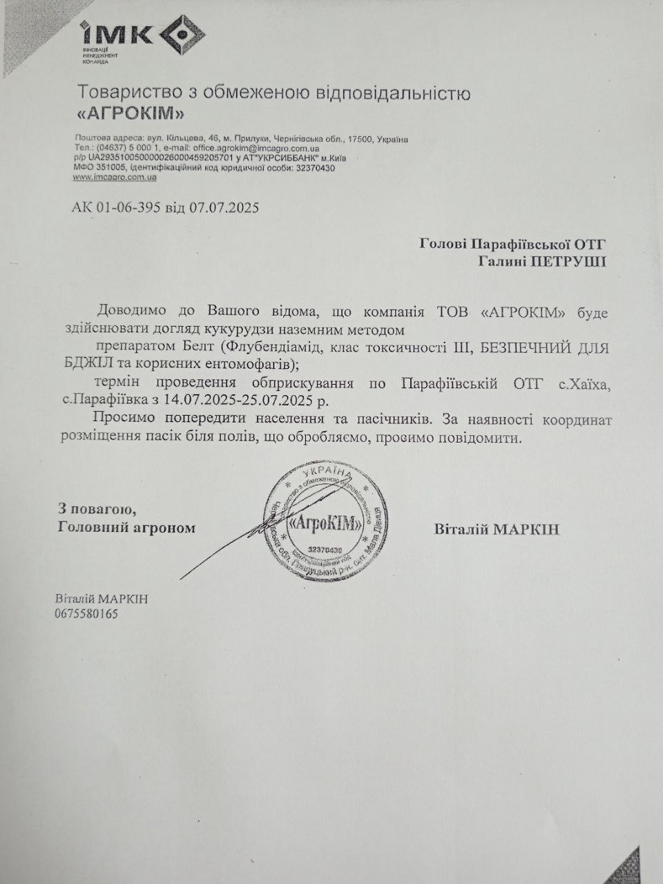 Обробка полів у Парафіївській громаді: Інформація для всіх