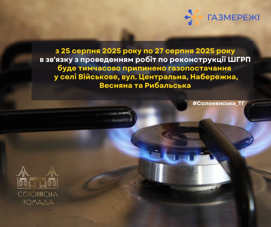 Газопостачання у Військовому: Припинення та роботи 25-28 серпня