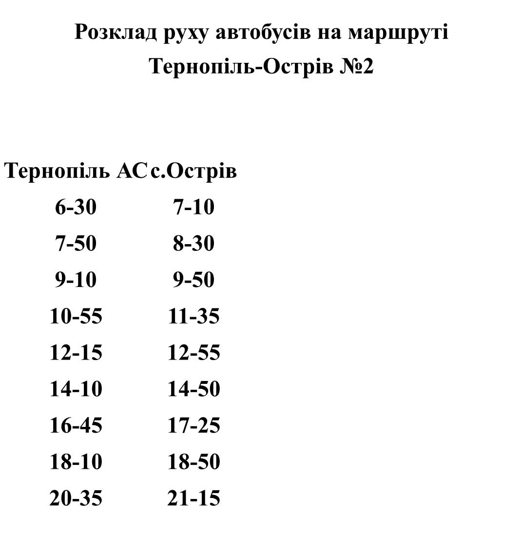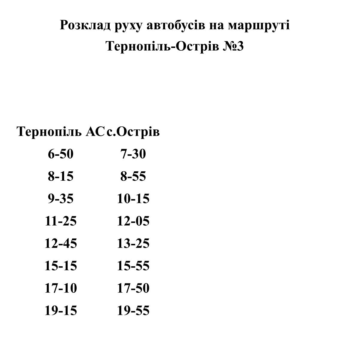 Зміни руху автобусів Тернопіль-Острів з 16.10.2025