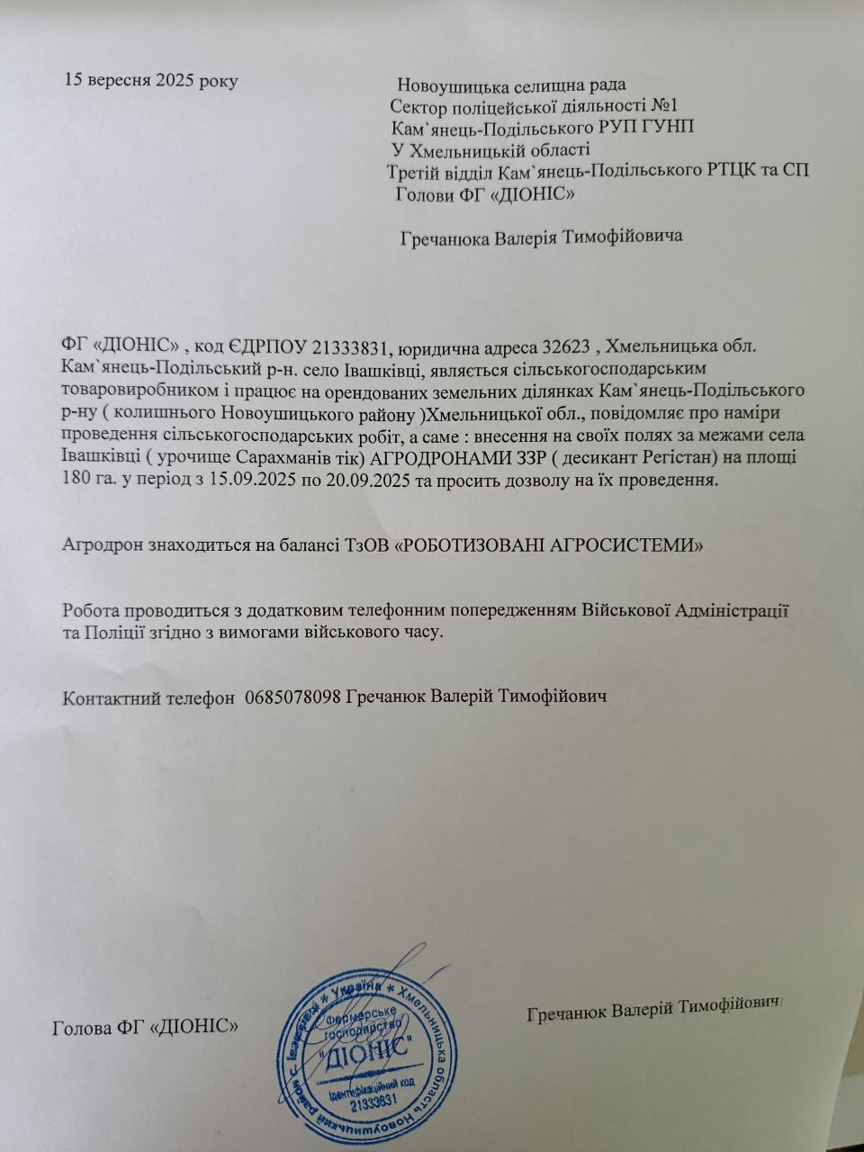 Для отримання додаткової інформації або у разі виникнення запитань, будь ласка, звертайтеся до представників фермерського господарства «Діоніс». Ваша обізнаність та співпраця допоможуть забезпечити успішне проведення цих важливих робіт.