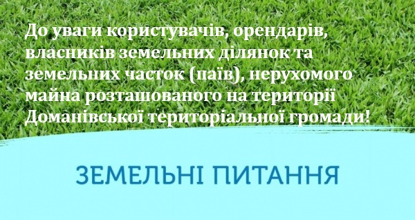До уваги користувачів, орендарів, власників земельних ділянок та земельних часток (паїв), нерухомого майна розташованого на території Доманівської територіальної громади!