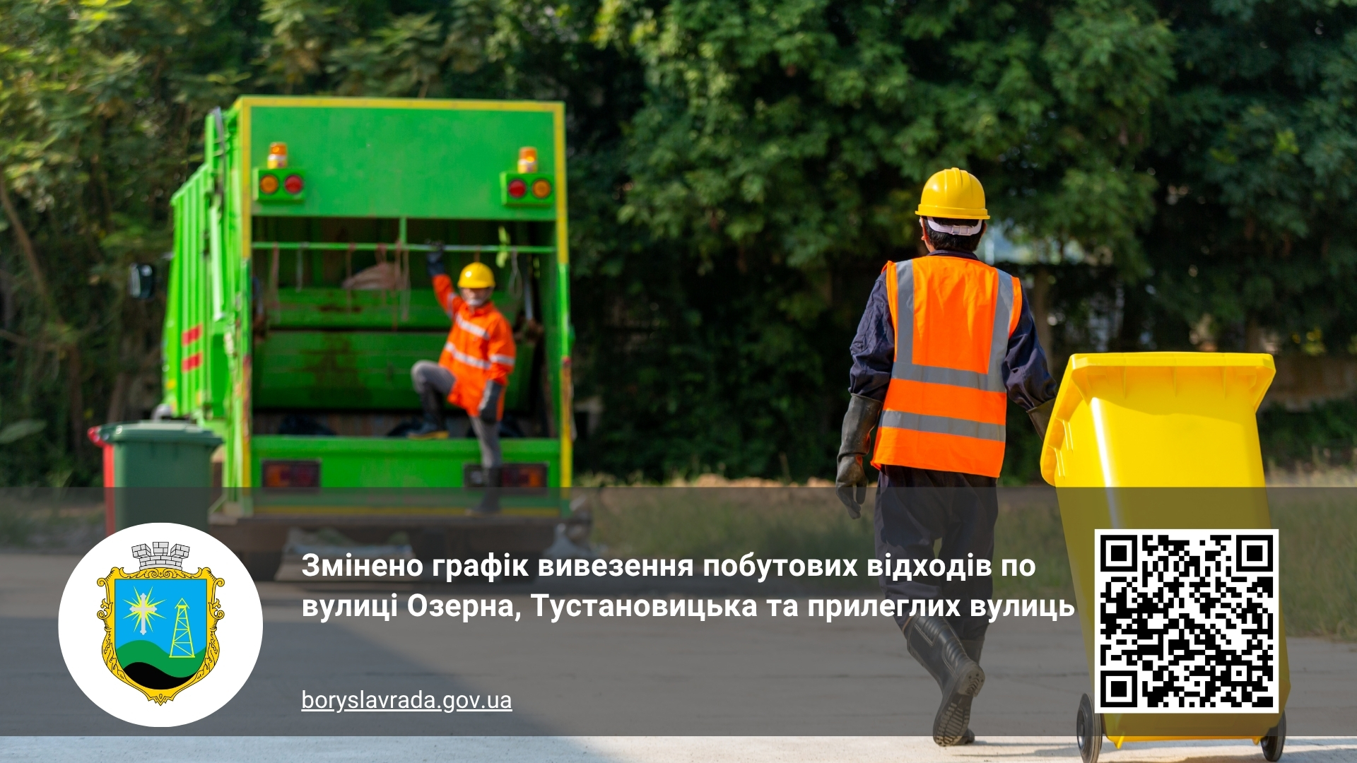 Увага, мешканці вулиць Озерна, Тустановицька та прилеглих! Управління житлово-комунального господарства та енергозбереження Бориславської міської ради інформує про важливі зміни у графіку вивезення ТПВ (твердих побутових відходів), які набувають чинності з 2 червня 2025 року.