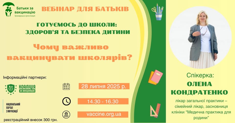 28 липня 2025 року о 14:30 год. відбудеться вебінар для батьків “Готуємось до школи: здоров’я та безпека дитини”.