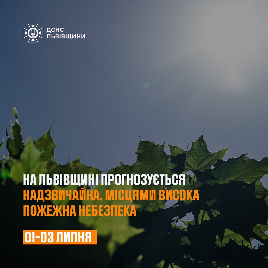 За повідомленням Львівського регіонального центру з гідрометеорології України, по території Львівської області 1 липня збережеться надзвичайна (5-й клас), місцями висока (4-й клас) пожежна небезпека. 2, 3 липня – надзвичайна (5-й клас) пожежна небезпека.