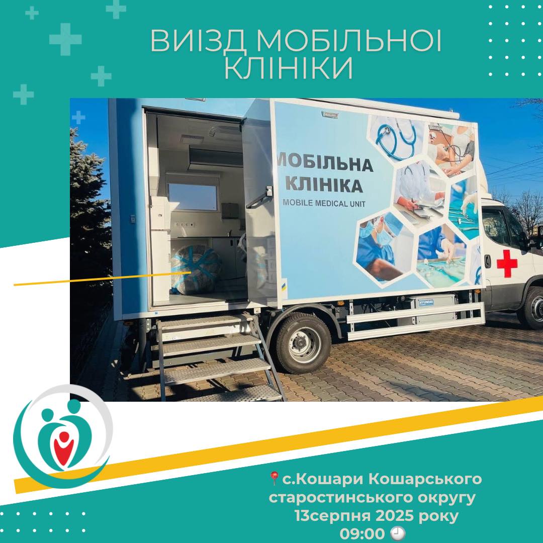 У середу, 13 серпня 2025 року о 09:00 🕘 ранку, до вас завітає медична мобільна клініка – сучасна амбулаторія на колесах Роздільнянського міського Центру первинної медико-санітарної допомоги.
