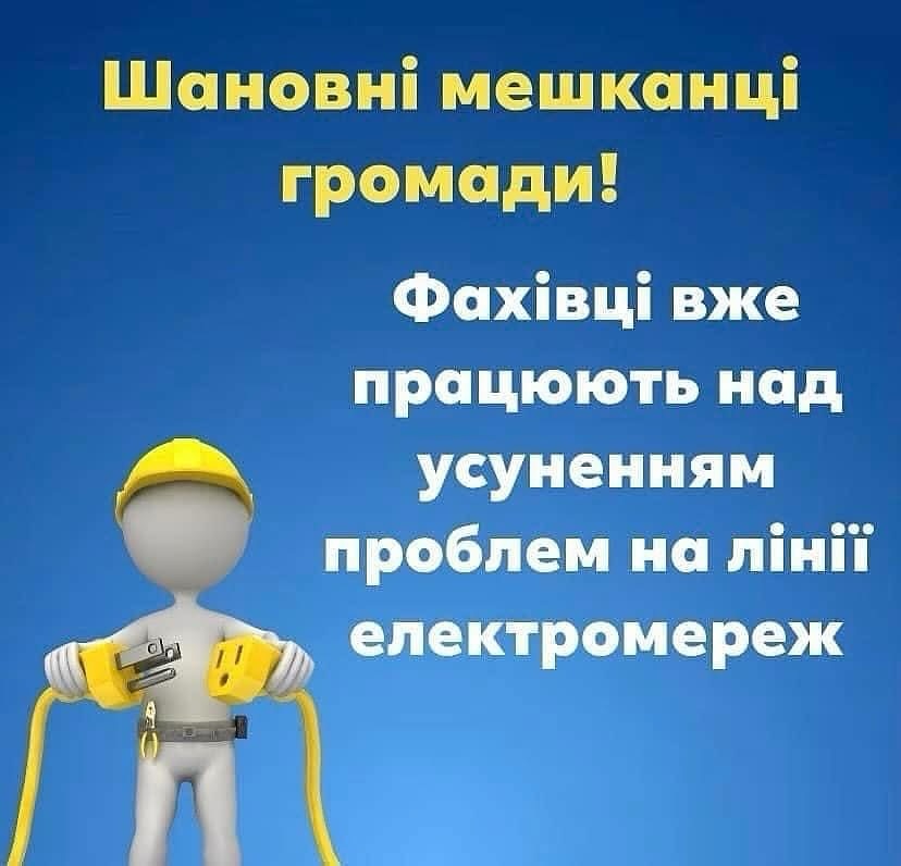 Повідомляємо вам, що через серйозну аварійну ситуацію на електромережах тимчасово відсутнє електропостачання у вашому населеному пункті. Наші кваліфіковані фахівці вже працюють над усуненням несправностей та відновленням нормального функціонування ліній електропередач. Ми докладаємо максимум зусиль, щоб якомога швидше повернути світло у ваші домівки. Очікується, що електропостачання буде відновлено протягом сьогоднішнього дня. Ми розуміємо, наскільки це може бути незручно, і щиро дякуємо вам за ваше терпіння, розуміння та витримку в цій ситуації. Ваш спокій та підтримка є надзвичайно важливими для нас. Ми віримо в нашу перемогу!🇺🇦