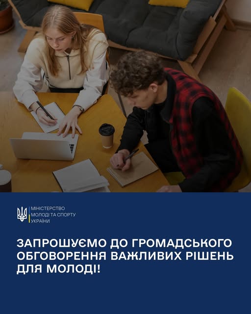 ❗️ УВАГА, МОЛОДЬ УКРАЇНИ! 🚀 Ваша думка важлива! Міністерство молоді та спорту України запрошує вас долучитися до громадського обговорення ключових рішень, що формуватимуть майбутнє молодіжної політики в країні. Ми відкрили обговорення двох надзвичайно важливих проєктів постанов Кабінету Міністрів: