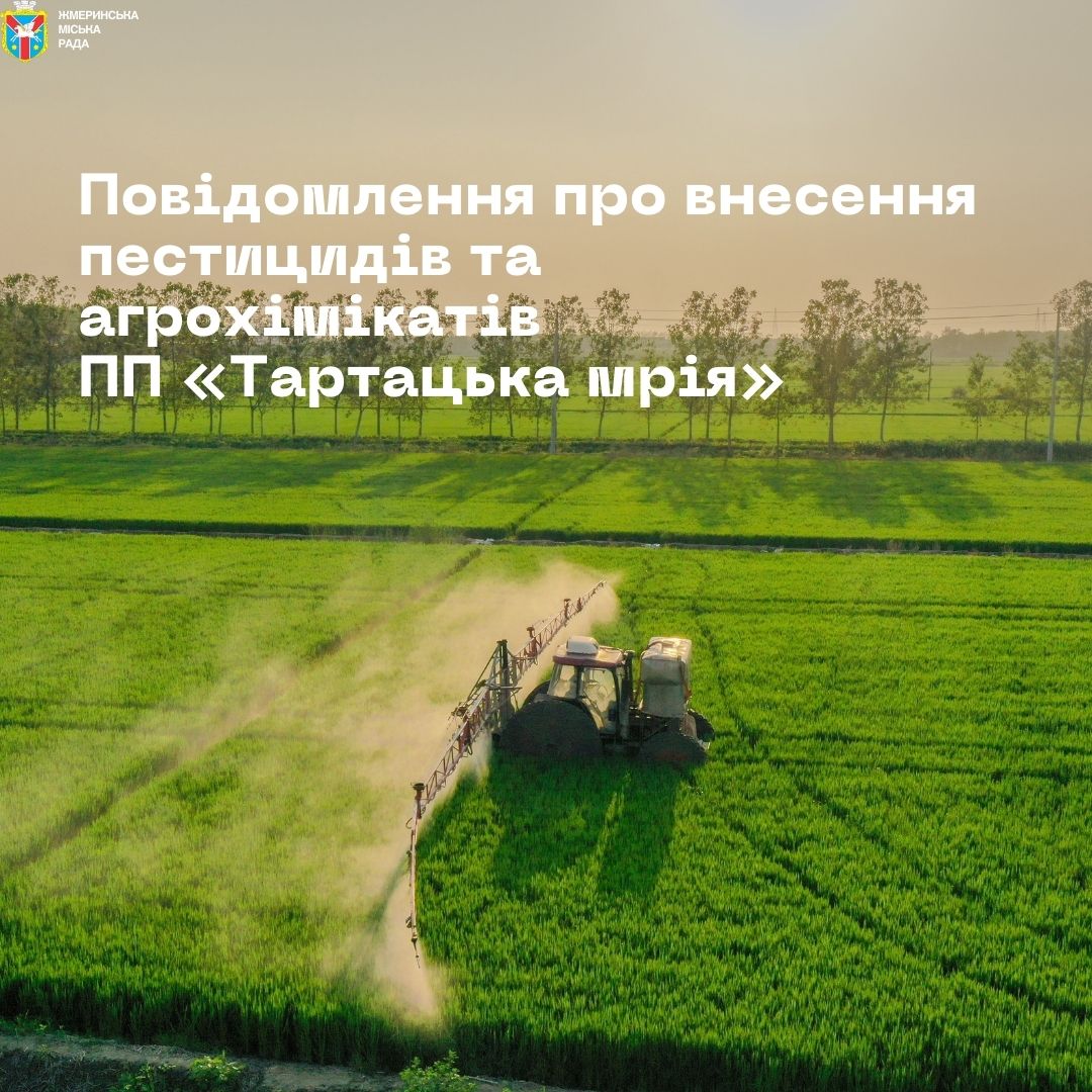 ☝️🐝 До уваги пасічників Жмеринської міської територіальної громади: Повідомлення про внесення пестицидів та агрохімікатів ПП «Тартацька мрія».