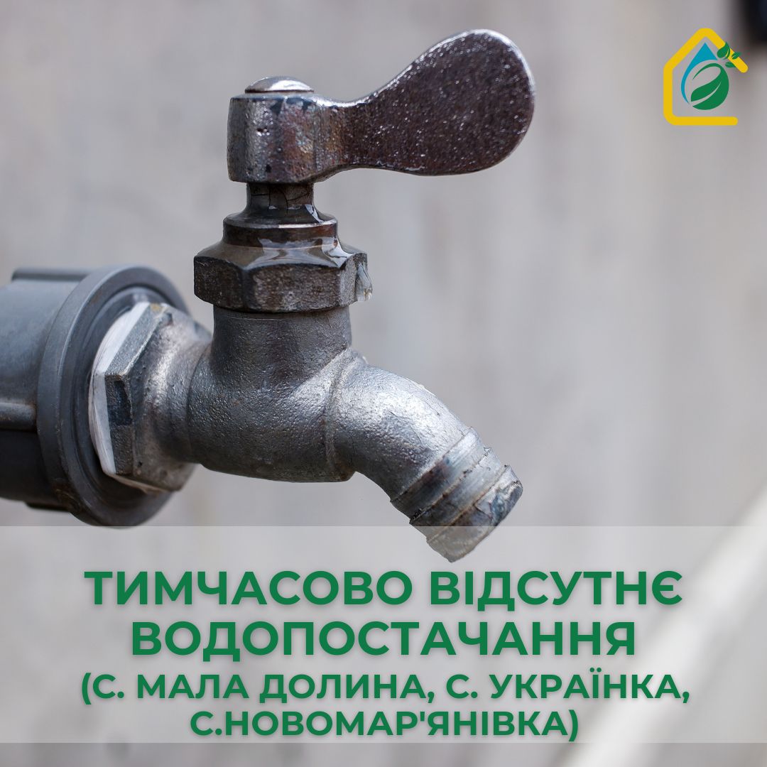 Наразі у ваших населених пунктах спостерігається відсутність водопостачання. Це пов’язано з аварійною ситуацією, що сталася на водопровідній мережі. Бригади спеціалістів вже працюють над усуненням дефекту, щоб якнайшвидше відновити нормальне функціонування системи.