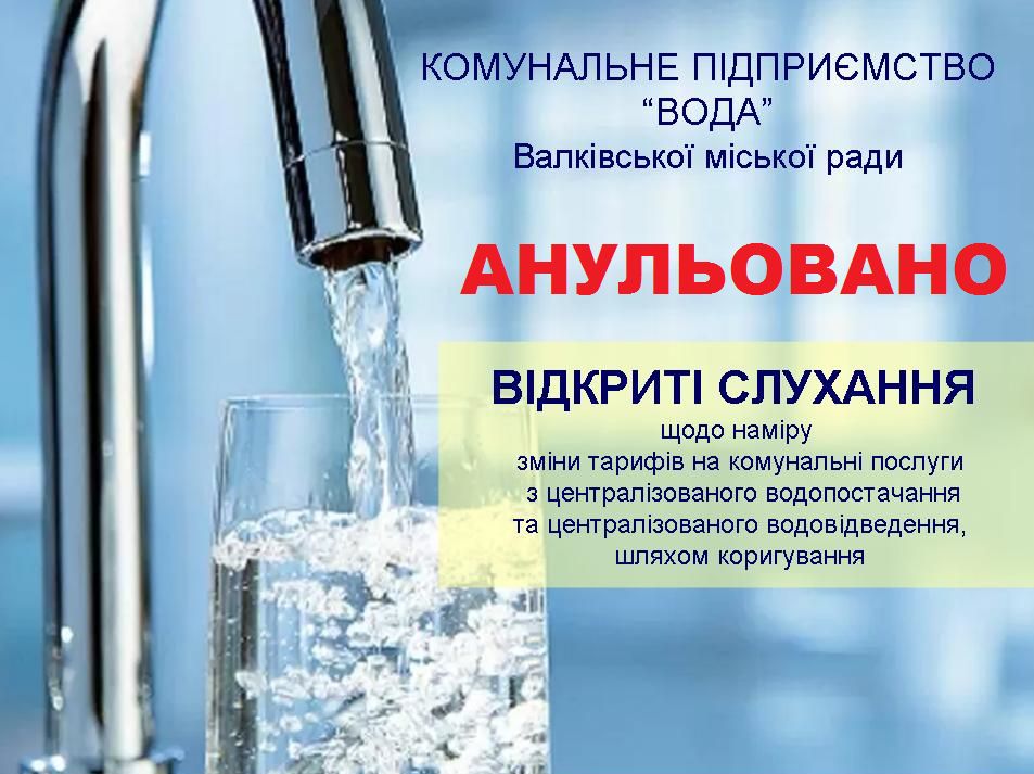 КП «Вода»: Скасування слухань щодо зміни тарифів на воду