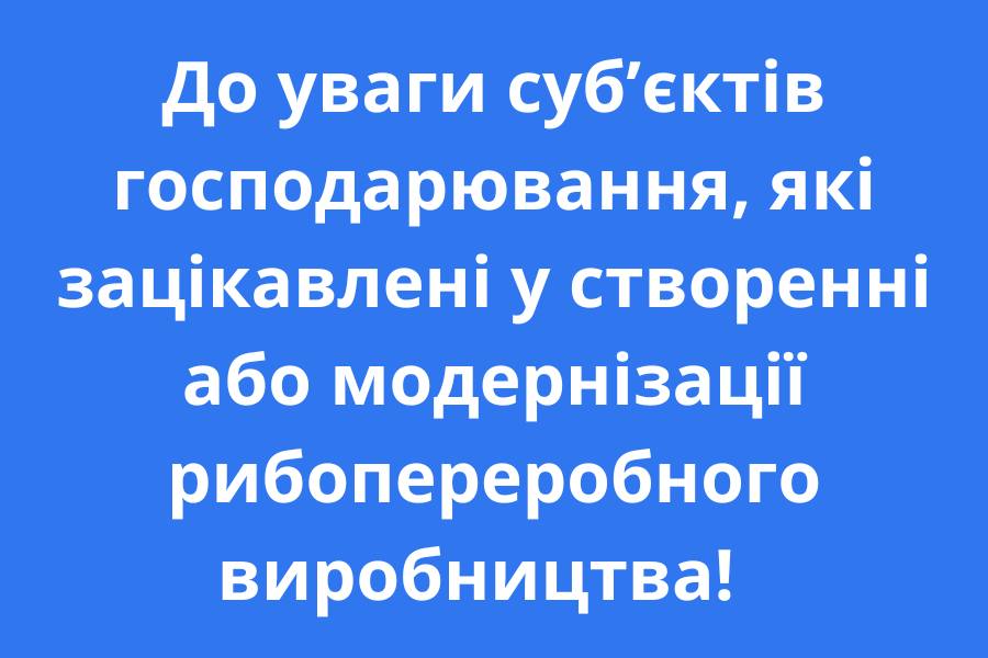 Шановні підприємці, які прагнуть розвивати або оновлювати своє виробництво у сфері переробки риби, маємо чудову новину! Держава надає унікальну можливість отримати фінансову підтримку для створення або модернізації рибопереробних підприємств.