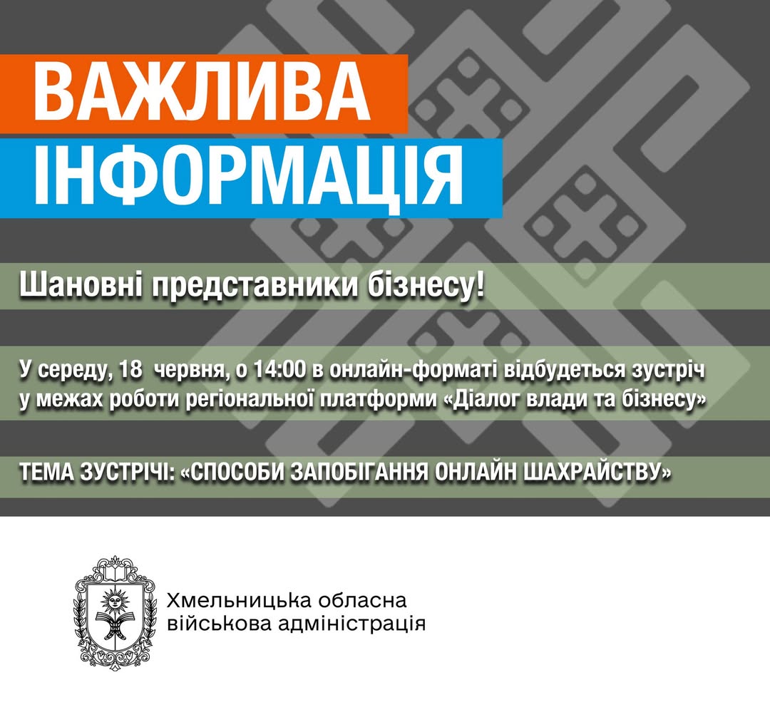 Маємо честь запросити Вас до участі в регіональній платформі «Діалог влади та бізнесу», присвяченій актуальній темі: «Способи запобігання онлайн шахрайству». Зустріч відбудеться вже цієї середи, 18 червня, о 14:00 в зручному онлайн-форматі.