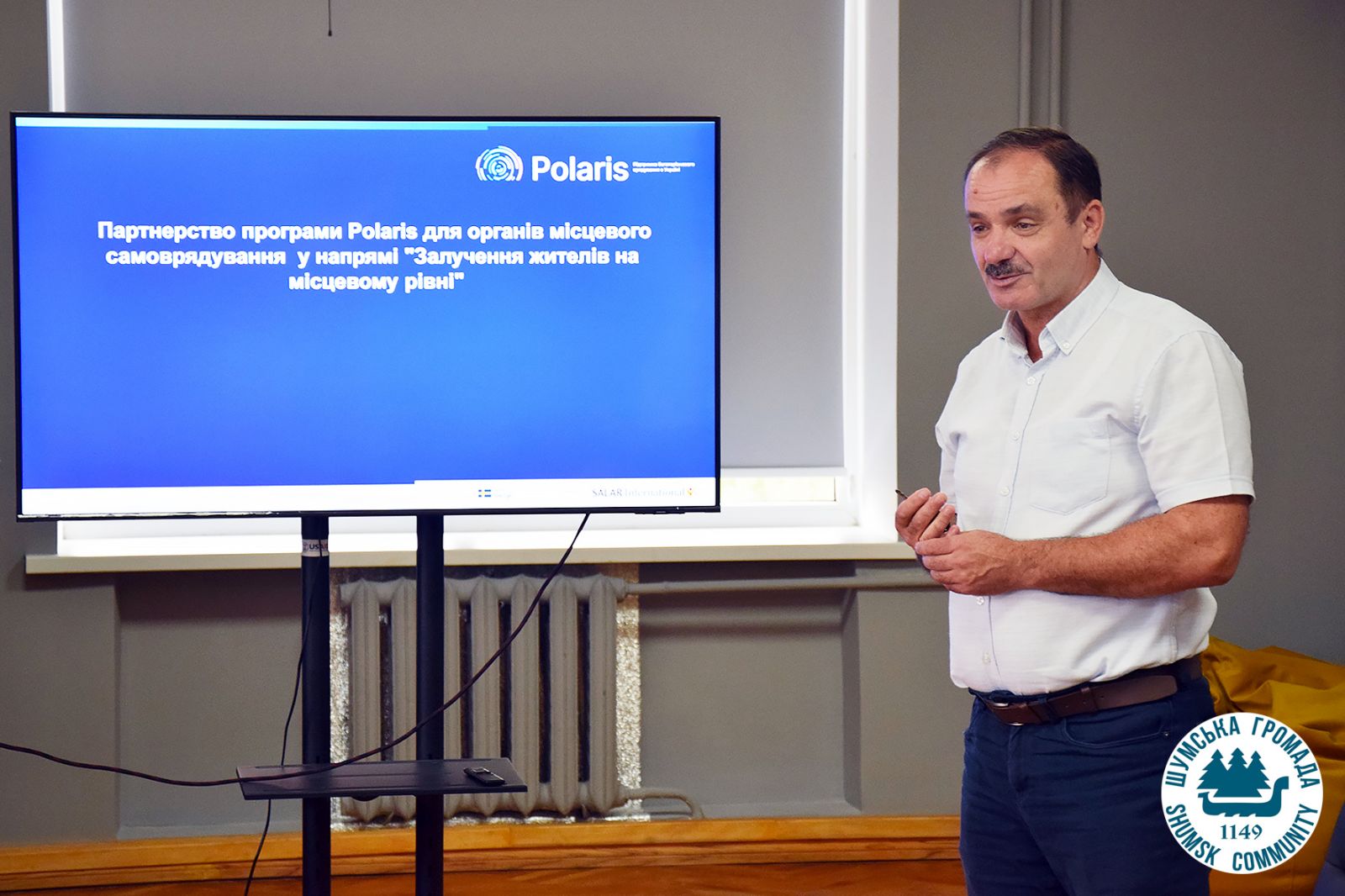 Експерти Програми Polaris, Наталія Чуйко та Павло Пущенко, здійснили робочий візит до Шумської громади. Зустріч, що відбулася в молодіжному просторі «Shum.Ok», була присвячена напряму «Залучення мешканців на місцевому рівні». У засіданні взяли участь представники робочої групи, громадських організацій та активні мешканці громади. Основною темою обговорення стала розробка Статуту громади та визначення ефективних механізмів для участі жителів у процесах місцевого самоврядування. Це важливий крок для розвитку Шумської громади та підвищення її ефективності.