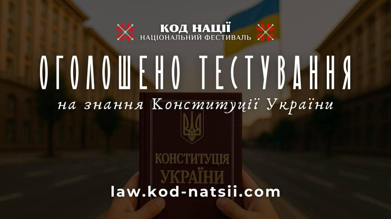 Національний Фестиваль “Код Нації” спільно з Національним юридичним університетом імені Ярослава Мудрого запрошують до онлайн – тестування на знання Конституції України.