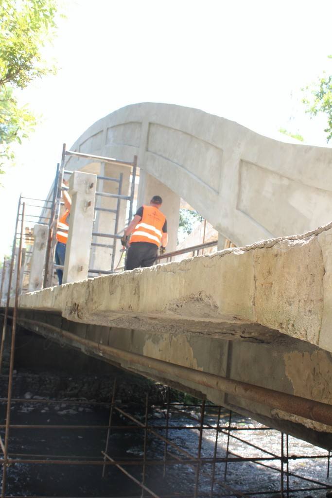 Окремі роботи вже зроблено. Є ділянки на нижній частині прогонової будови мосту, що теж потребують ремонту. Там давно встановлено риштування. Зробимо піско-струменеву обробку, потім поштукатуримо й пофарбуємо.