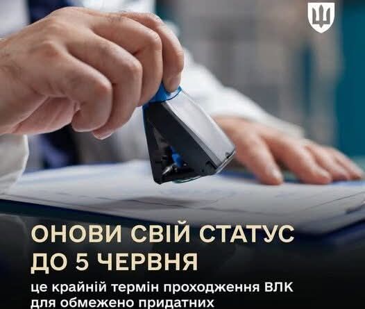 Повторний прохід ВЛК: Важлива інформація для обмежено придатних до 5 червня