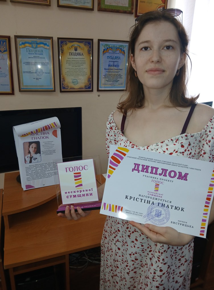 Віддана користувачка комунального закладу “Дубов’язівська публічна бібліотека” Крістіна ГНАТЮК, студентка Київського університету культури, попри важкий час, не забуває стежину до нашого закладу та не зупиняється на творчому шляху. І вже в котрий раз проєкт “Голос нескоренї Сумщини” приймає її як поета нашого краю, і цьогоріч її поезії увійшли до поетичної збірки “Голос нескореної Сумщини 2.0.”