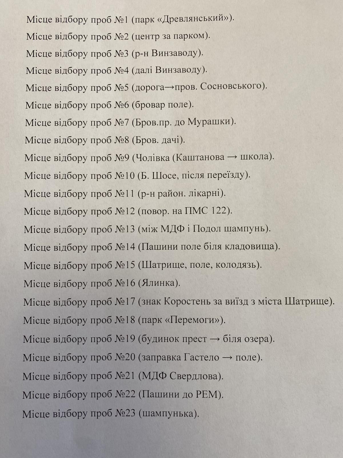 Проінформуємо громаду про перелік територій, на яких проводяться дані заміри радіоактивного фону.