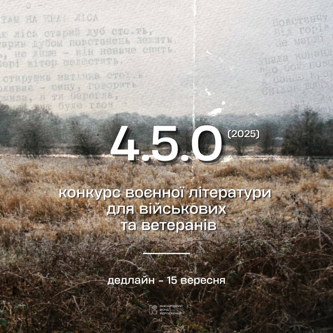 Другий щорічний конкурс воєнної літератури для військових і ветеранів російсько-української війни стартує вже сьогодні, надаючи унікальну можливість зафіксувати та поділитися своїм досвідом. Цей конкурс, започаткований нашим Фондом у 2024 році, має на меті створити простір, де історії наших захисників будуть почуті, а їхні голоси — посилені. Ми прагнемо дати можливість військовим та ветеранам висловити свої переживання та донести власний голос до широкого кола читачів, зберігаючи правду про війну та вшановуючи тих, хто писав її власним життям. Минулого року конкурс зібрав сотні сильних робіт, найкращі з яких готуються до друку у Видавництві Старого Лева. У 2025 році ми продовжуємо цю важливу ініціативу.