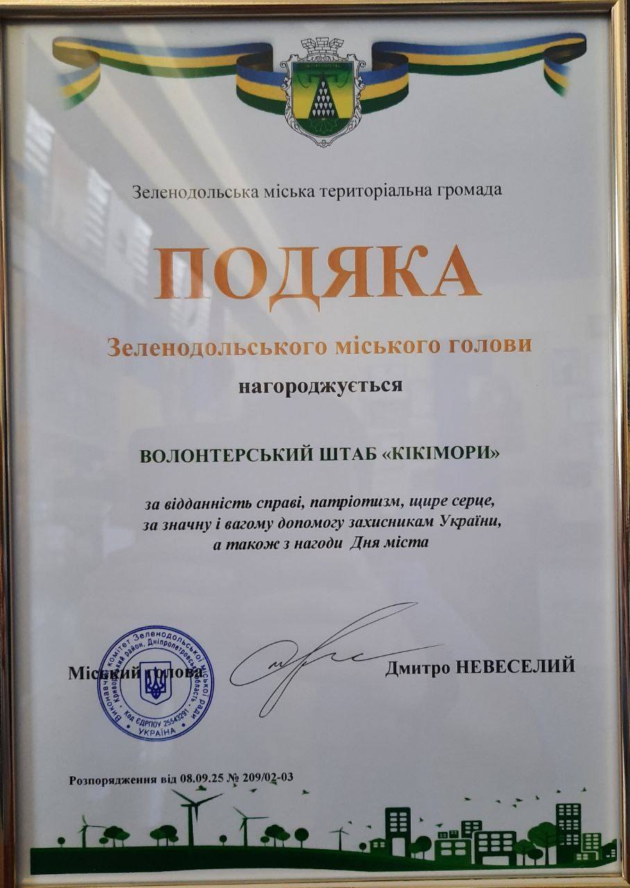 Особливу вдячність висловлюємо Дмитру Невеселому, Ользі Цицюрі та Зеленодольській міській територіальній громаді за їхню постійну, незмінну підтримку та допомогу. Ваша відданість надихає та мотивує.
