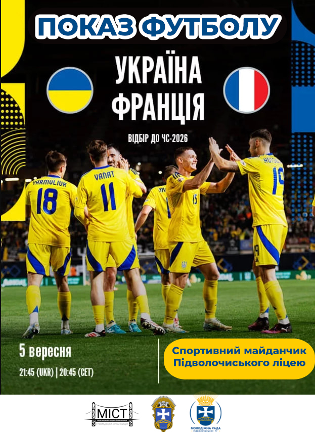 ⚽️ Друзі! Молодіжна рада Підволочиська запрошує всіх на унікальну можливість спільного перегляду матчу між збірними України та Франції просто неба!